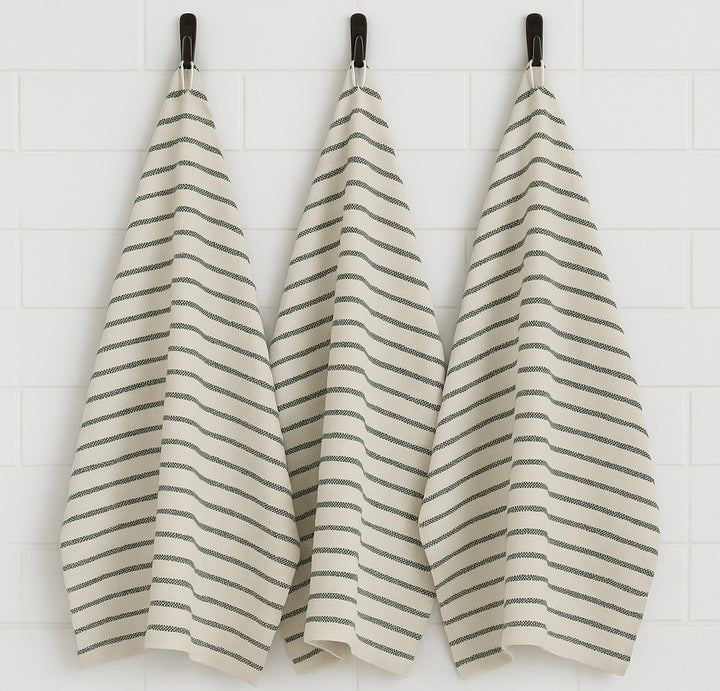 Terry Green Stripes Kitchen Towels - 3 Towels/Pack